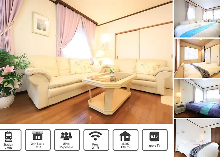 The 1-bedroom Rkt4Bedroom Forfamily 30Mins Shibuya And Azabu is located nearly a 25-minute walk from Senzoku Pond and provides guests with a Jacuzzi for a more relaxing stay. Featuring a sunny patio, the accommodation is situated nearly a 25-minute walk from Meguro Parasitological Museum.